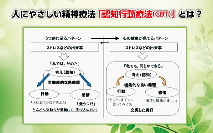 認知行動療法は、この悪循環を見直し、好循環に持っていくようにバランスをとる、人にやさしい精神療法です。