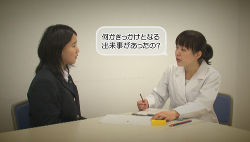 DVDの中では、二つの事例のロールプレイを収録していますので、実際の保健室での使用に関して参考にしていただければ幸いです。