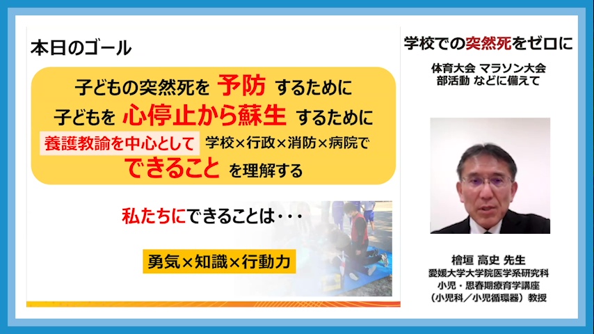| 12月24日配信開始『学校での突然死をゼロに~体育大会、マラソン大会、部活動などに備えて~』収録レポート | ||||||